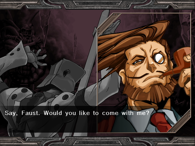 | Home | BackTweet | Arcade Mode | - Story Mode - | | A.B.A | Anji-Mito | Axl Low | Baiken | Bridget | Chipp Zanuff | Dizzy | Eddie | - Faust - | I-No | Jam | Johnny | Justice | Kliff Undersn | | Ky-Kiske | May | Millia Rage | Order-Sol | Potemkin | Robo-Ky | Slayer | Sol-Badguy | Testament | Venom | Zappa | | - If Your Final Opponent Is Slayer - | If Your Final Opponent Is Zappa |