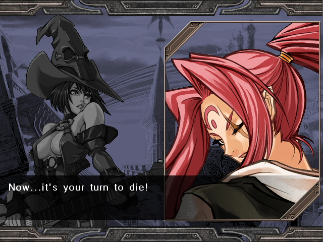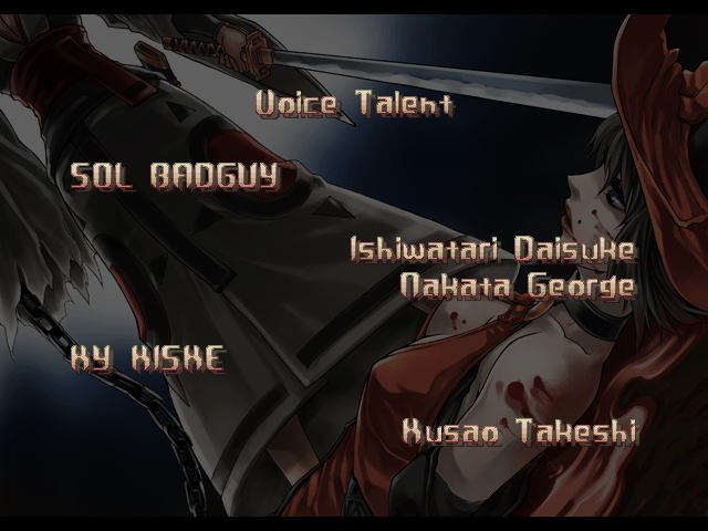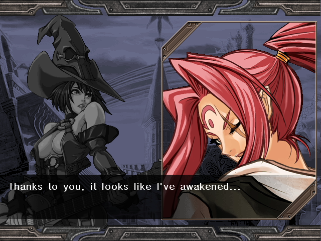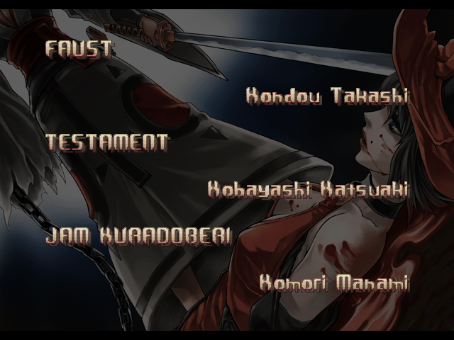 | Home | BackTweet | Arcade Mode | - Story Mode - | | A.B.A | Anji-Mito | Axl Low | Baiken | Bridget | Chipp Zanuff | Dizzy | Eddie | Faust | - I-No - | Jam | Johnny | Justice | Kliff Undersn | | Ky-Kiske | May | Millia Rage | Order-Sol | Potemkin | Robo-Ky | Slayer | Sol-Badguy | Testament | Venom | Zappa | | If Your Final Opponent Is Anji Mito | - If Your Final Opponent Is Baiken - |