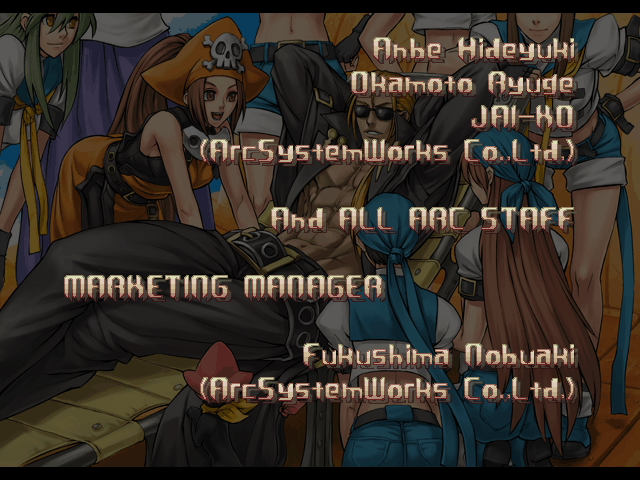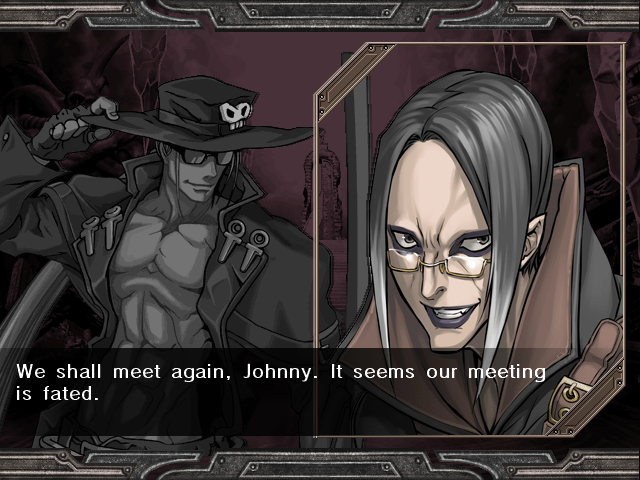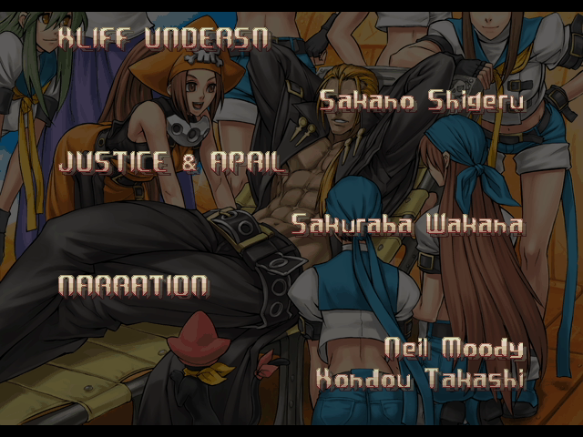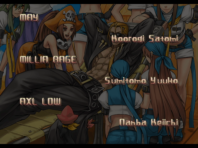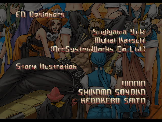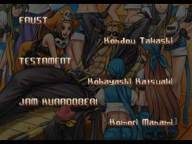 | - If You Beat Testament In Less Than 50 Seconds - | If You Beat Testament In More Than 50 Seconds | | A.B.A | Anji-Mito | Axl Low | Baiken | Bridget | Chipp Zanuff | Dizzy | Eddie | Faust | I-No | Jam | - Johnny - | Justice | Kliff Undersn | | Ky-Kiske | May | Millia Rage | Order-Sol | Potemkin | Robo-Ky | Slayer | Sol-Badguy | Testament | Venom | Zappa | | Arcade Mode | - Story Mode - | |