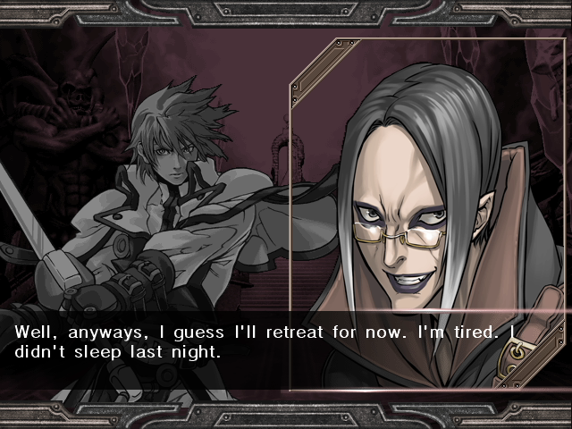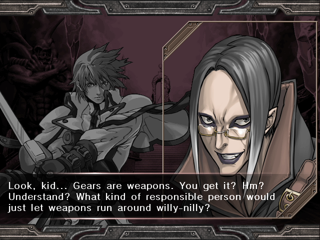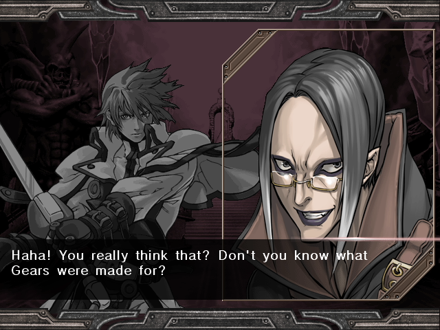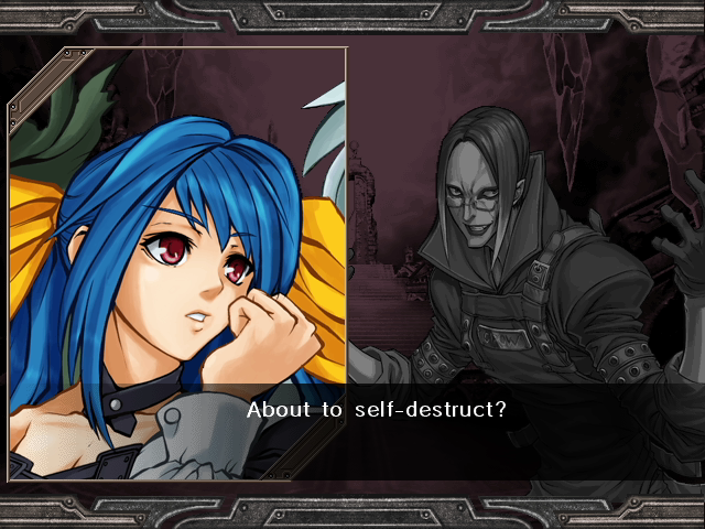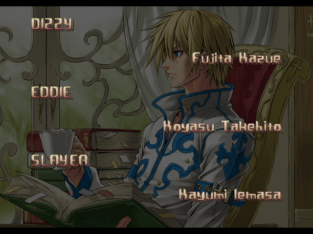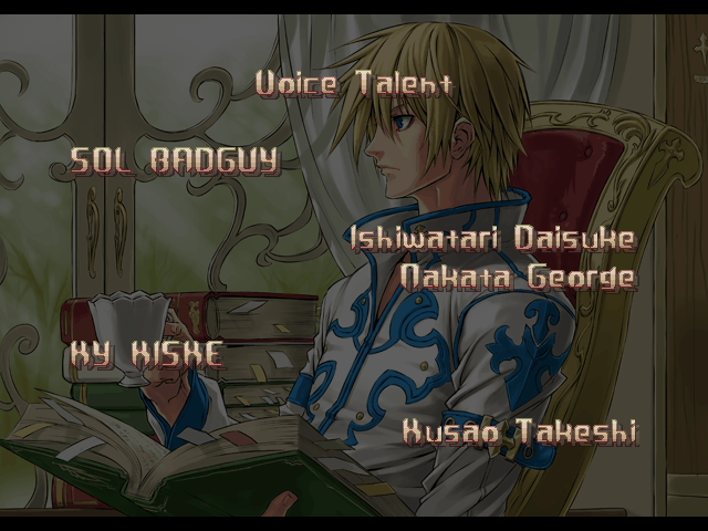 | If Your Final Opponent Is Sol Badguy | If Your Final Opponent Is A.B.A | - If Your Final Opponent Is Justice - | | A.B.A | Anji-Mito | Axl Low | Baiken | Bridget | Chipp Zanuff | Dizzy | Eddie | Faust | I-No | Jam | Johnny | Justice | Kliff Undersn | | - Ky-Kiske - | May | Millia Rage | Order-Sol | Potemkin | Robo-Ky | Slayer | Sol-Badguy | Testament | Venom | Zappa | | Arcade Mode | - Story Mode - | |