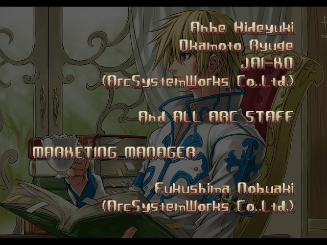 | Home | BackTweet | Arcade Mode | - Story Mode - | | A.B.A | Anji-Mito | Axl Low | Baiken | Bridget | Chipp Zanuff | Dizzy | Eddie | Faust | I-No | Jam | Johnny | Justice | Kliff Undersn | | - Ky-Kiske - | May | Millia Rage | Order-Sol | Potemkin | Robo-Ky | Slayer | Sol-Badguy | Testament | Venom | Zappa | | If Your Final Opponent Is Sol Badguy | If Your Final Opponent Is A.B.A | - If Your Final Opponent Is Justice - |