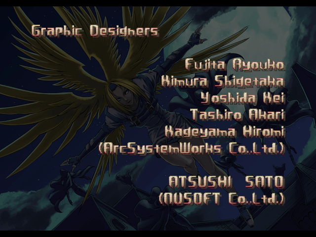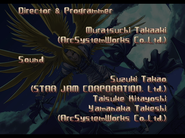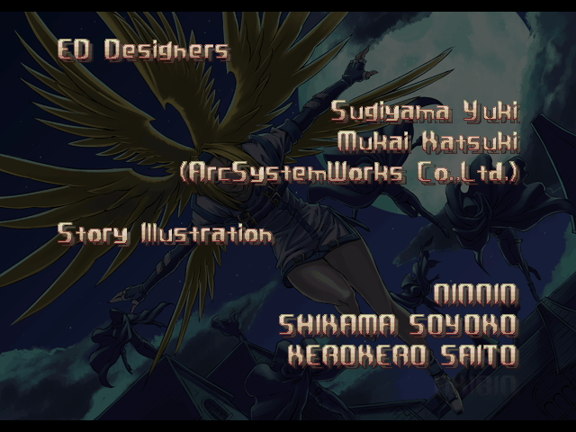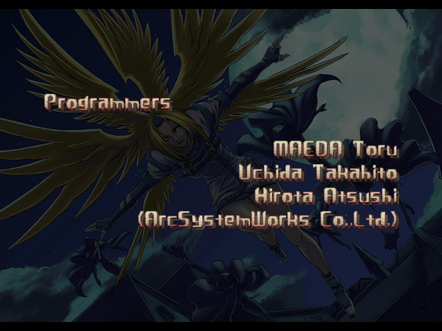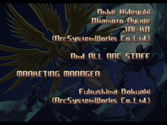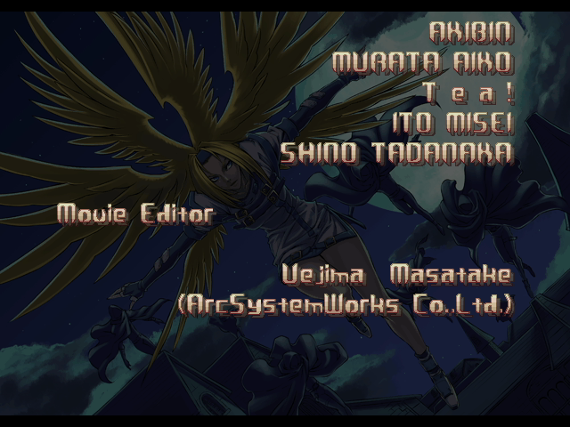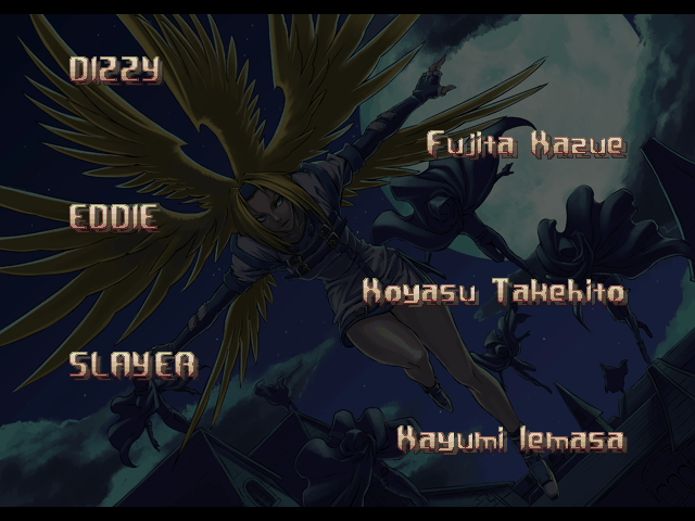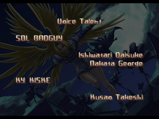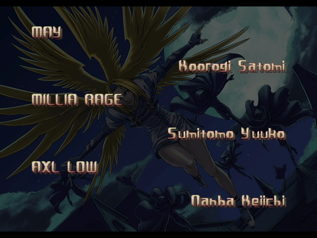 | - If Your Final Opponent Is Eddie - | If Your Final Opponent Is Bridget | | A.B.A | Anji-Mito | Axl Low | Baiken | Bridget | Chipp Zanuff | Dizzy | Eddie | Faust | I-No | Jam | Johnny | Justice | Kliff Undersn | | Ky-Kiske | May | - Millia Rage - | Order-Sol | Potemkin | Robo-Ky | Slayer | Sol-Badguy | Testament | Venom | Zappa | | Arcade Mode | - Story Mode - | |