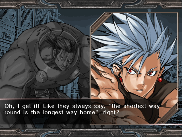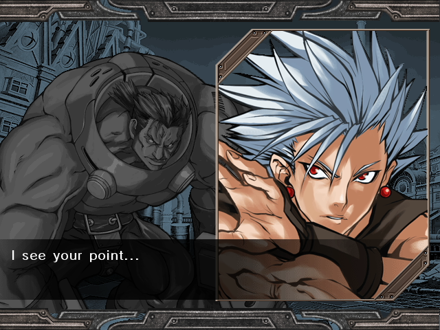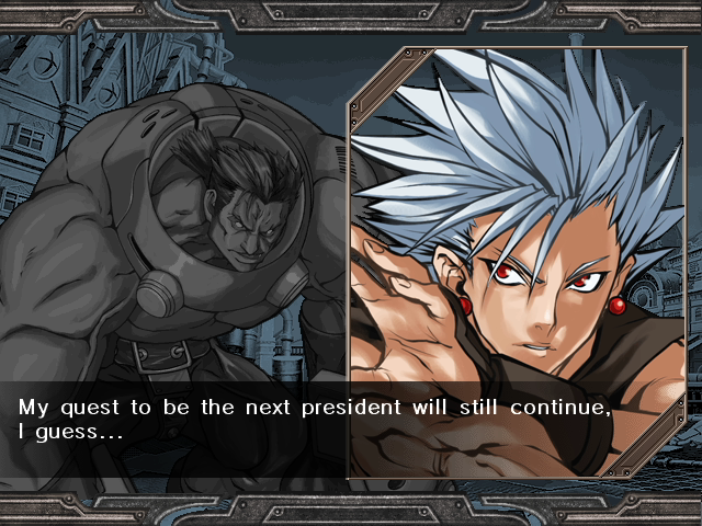 | Home | BackTweet | Arcade Mode | - Story Mode - | | A.B.A | Anji-Mito | Axl Low | Baiken | Bridget | Chipp Zanuff | Dizzy | Eddie | Faust | I-No | Jam | Johnny | Justice | Kliff Undersn | | Ky-Kiske | May | Millia Rage | Order-Sol | - Potemkin - | Robo-Ky | Slayer | Sol-Badguy | Testament | Venom | Zappa | | - If You Defeat Chipp With An Instant Kill - | If You Defeat Chipp Without An Instant Kill, or If Your Final Opponent Is Slayer |