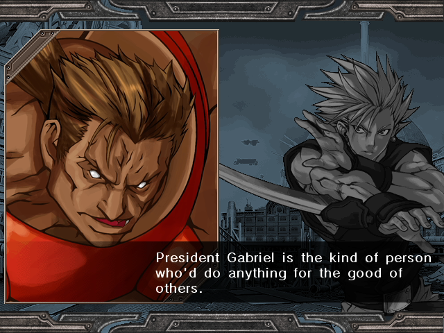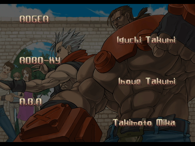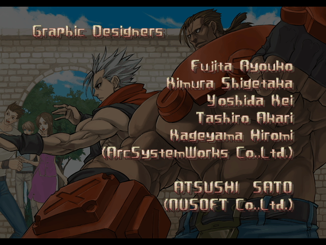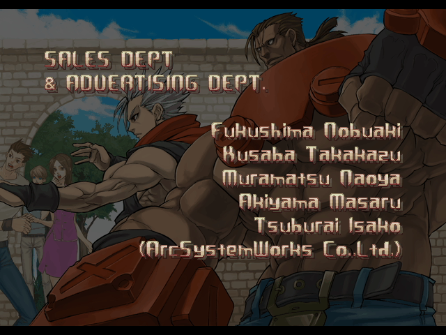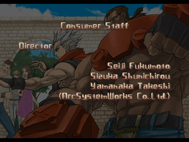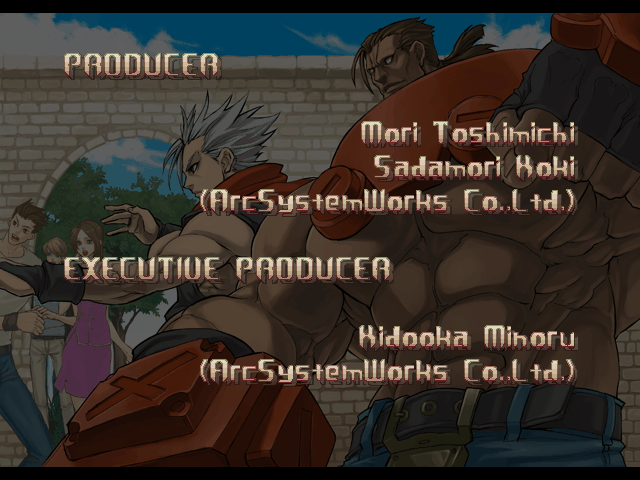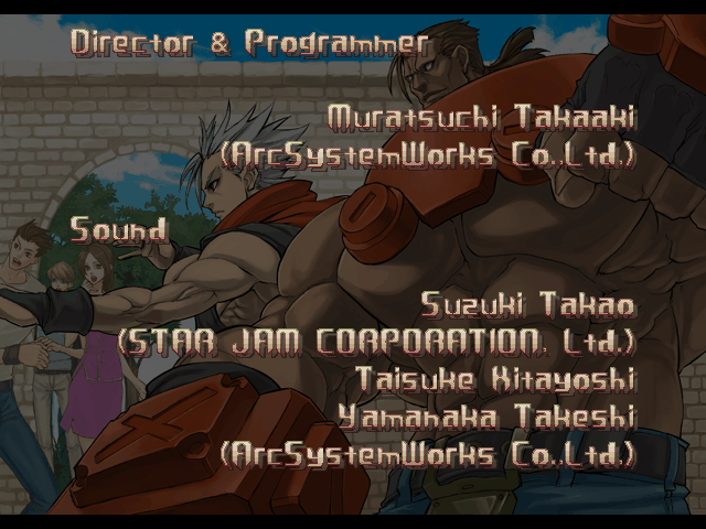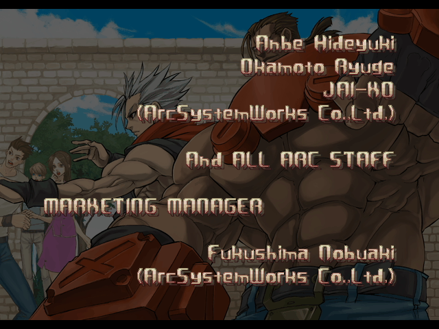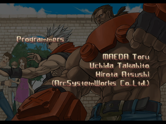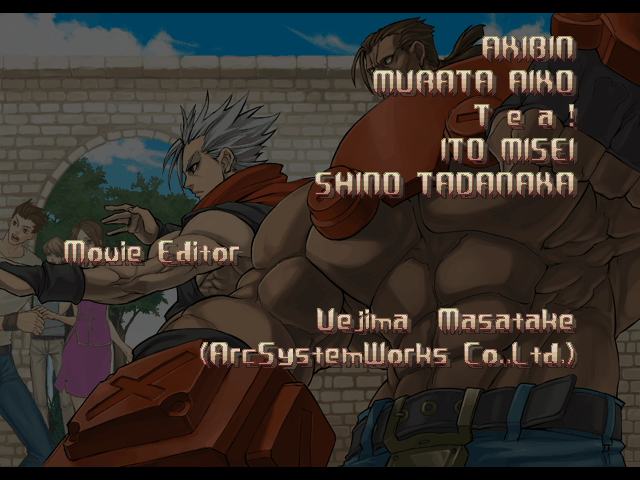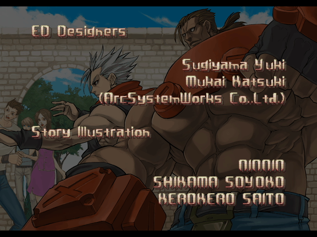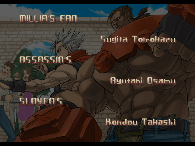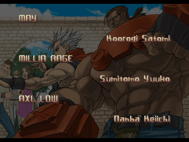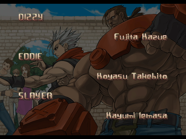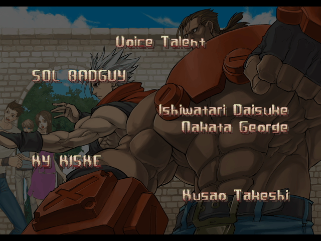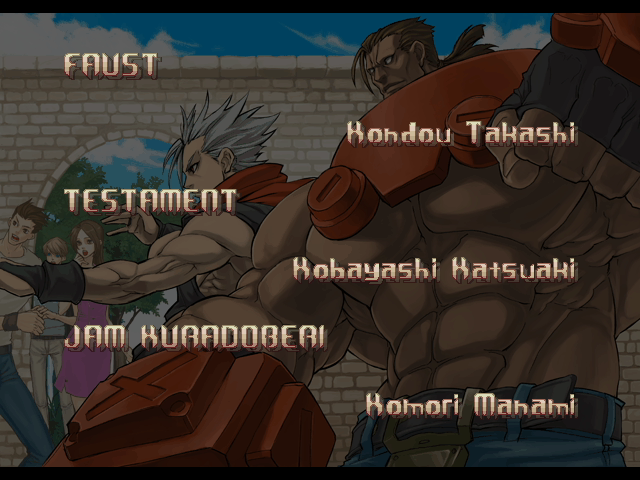 | - If You Defeat Chipp With An Instant Kill - | If You Defeat Chipp Without An Instant Kill, or If Your Final Opponent Is Slayer | | A.B.A | Anji-Mito | Axl Low | Baiken | Bridget | Chipp Zanuff | Dizzy | Eddie | Faust | I-No | Jam | Johnny | Justice | Kliff Undersn | | Ky-Kiske | May | Millia Rage | Order-Sol | - Potemkin - | Robo-Ky | Slayer | Sol-Badguy | Testament | Venom | Zappa | | Arcade Mode | - Story Mode - | |