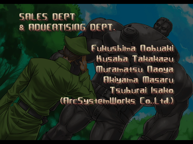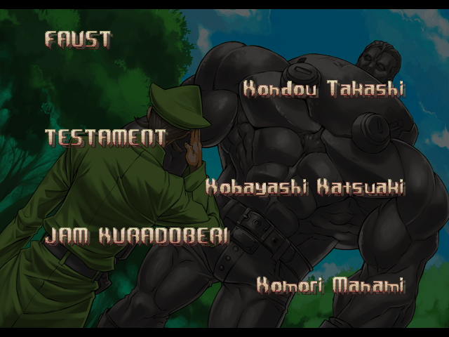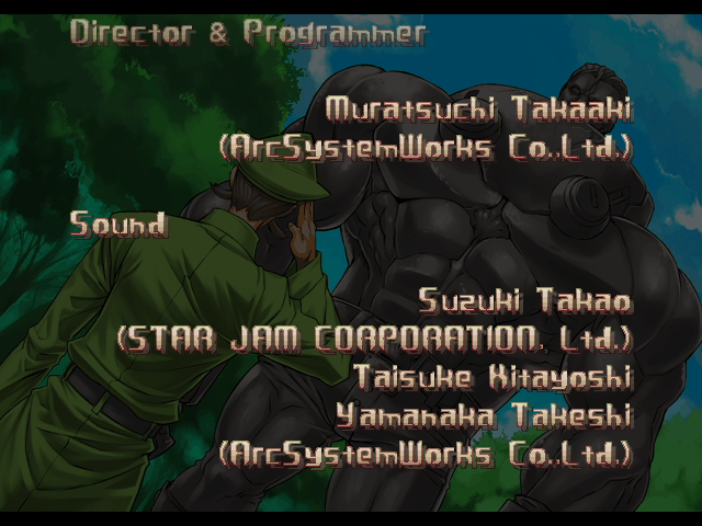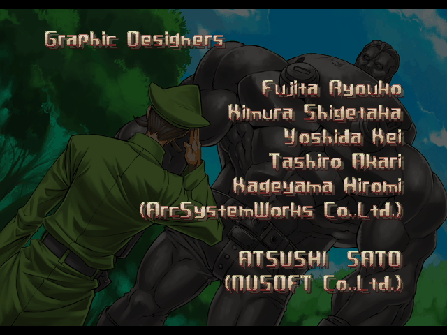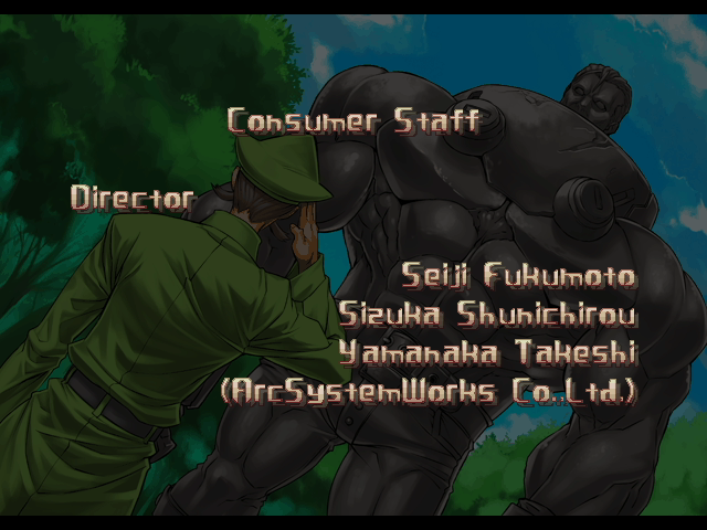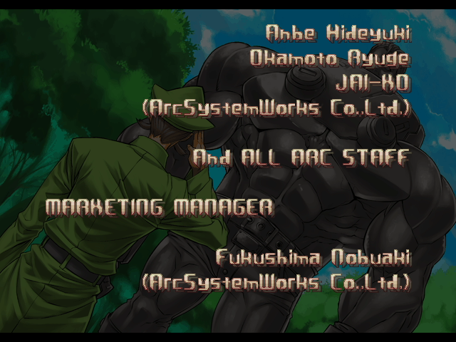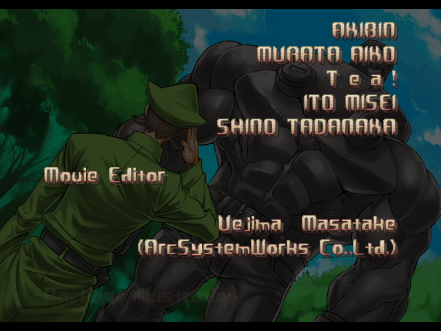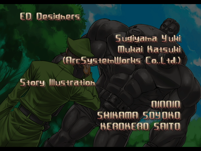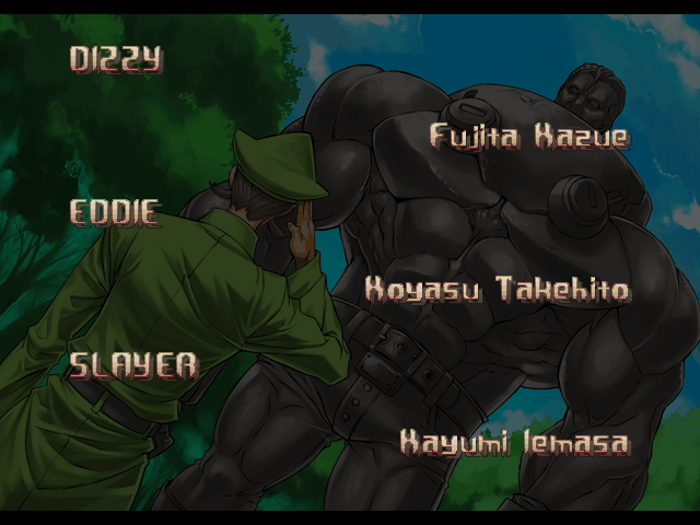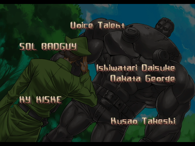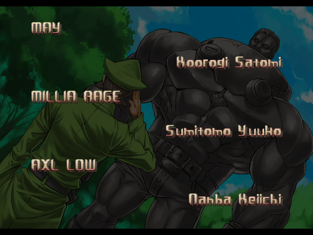 | If You Defeat Chipp With An Instant Kill | - If You Defeat Chipp Without An Instant Kill, or If Your Final Opponent Is Slayer - | | A.B.A | Anji-Mito | Axl Low | Baiken | Bridget | Chipp Zanuff | Dizzy | Eddie | Faust | I-No | Jam | Johnny | Justice | Kliff Undersn | | Ky-Kiske | May | Millia Rage | Order-Sol | - Potemkin - | Robo-Ky | Slayer | Sol-Badguy | Testament | Venom | Zappa | | Arcade Mode | - Story Mode - | |
