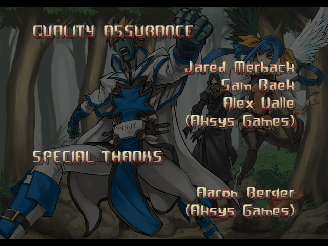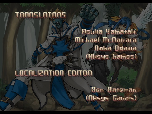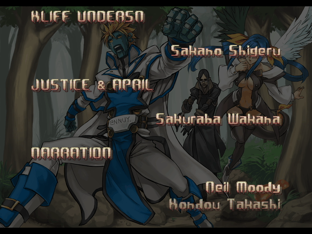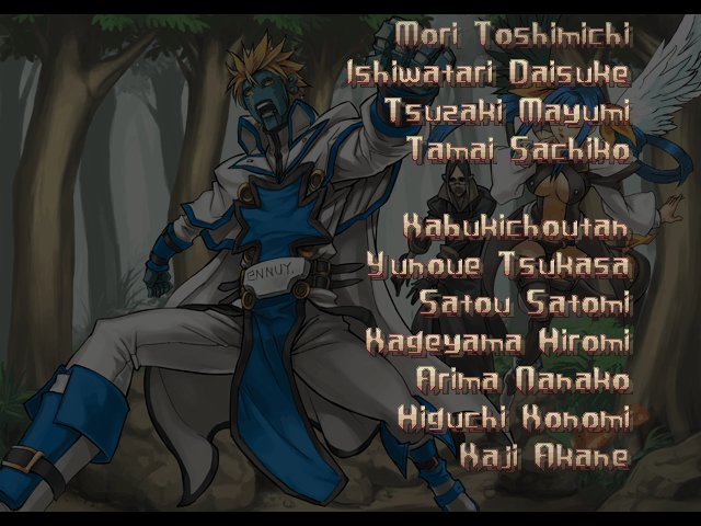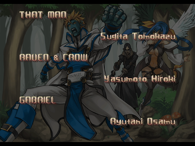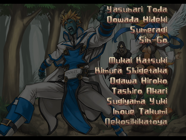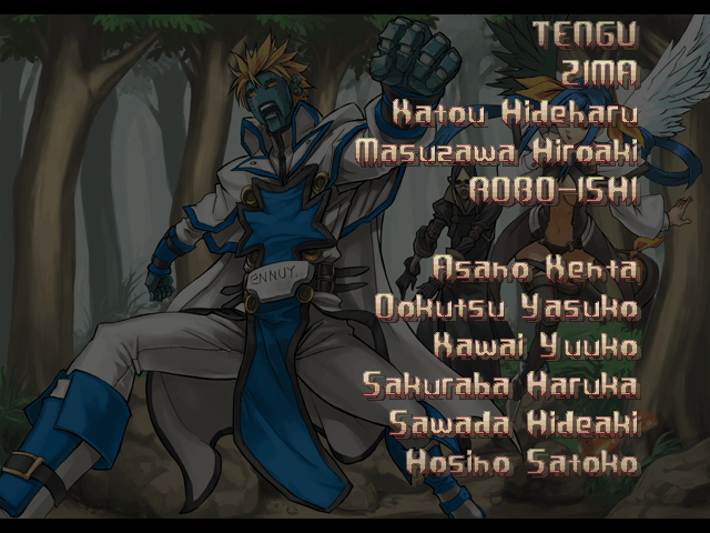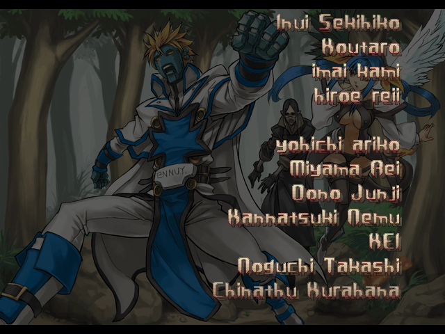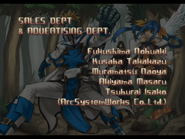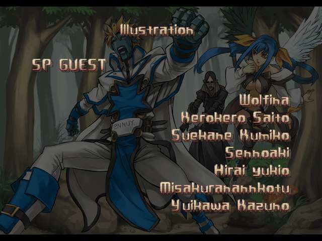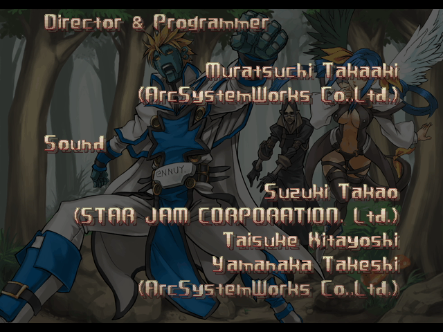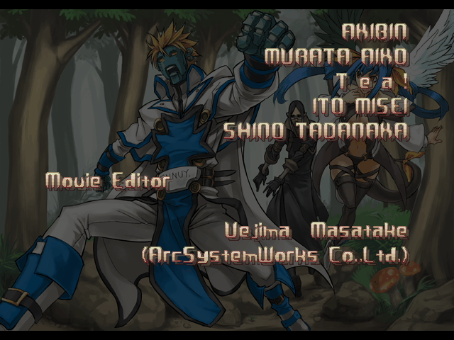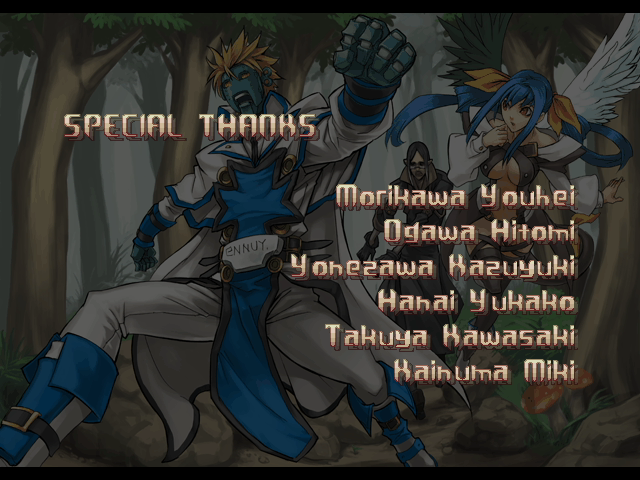 | If Your Final Opponent Is Justice | - If Your Final Opponent Is Dizzy - | | A.B.A | Anji-Mito | Axl Low | Baiken | Bridget | Chipp Zanuff | Dizzy | Eddie | Faust | I-No | Jam | Johnny | Justice | Kliff Undersn | | Ky-Kiske | May | Millia Rage | Order-Sol | Potemkin | - Robo-Ky - | Slayer | Sol-Badguy | Testament | Venom | Zappa | | Arcade Mode | - Story Mode - | |