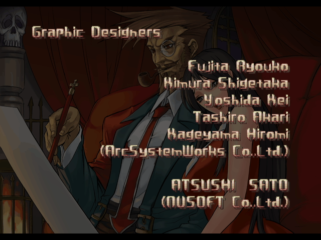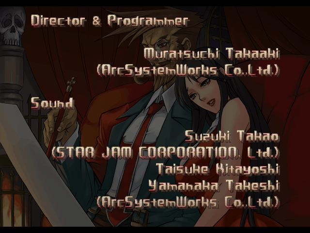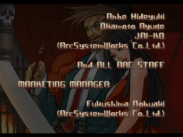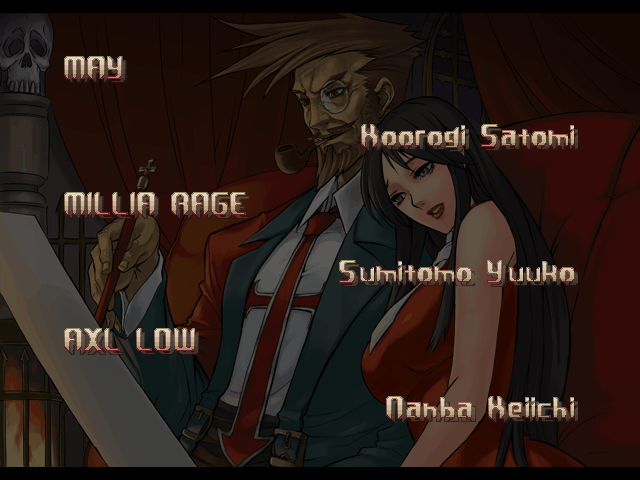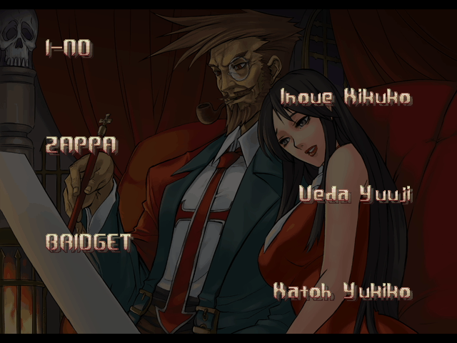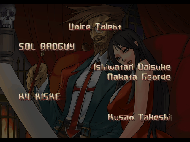 | - If Your Final Opponent Is Potemkin - | If Your Final Opponent Is Baiken | | A.B.A | Anji-Mito | Axl Low | Baiken | Bridget | Chipp Zanuff | Dizzy | Eddie | Faust | I-No | Jam | Johnny | Justice | Kliff Undersn | | Ky-Kiske | May | Millia Rage | Order-Sol | Potemkin | Robo-Ky | - Slayer - | Sol-Badguy | Testament | Venom | Zappa | | Arcade Mode | - Story Mode - | |