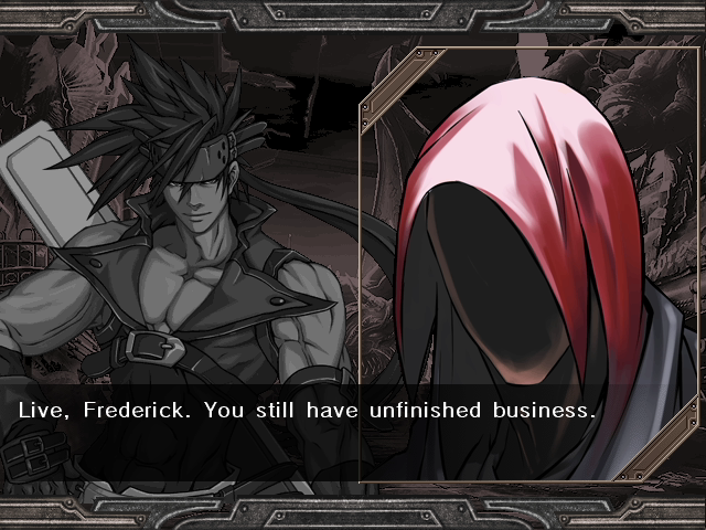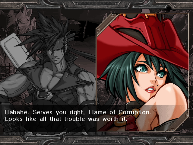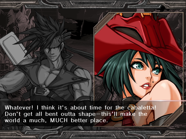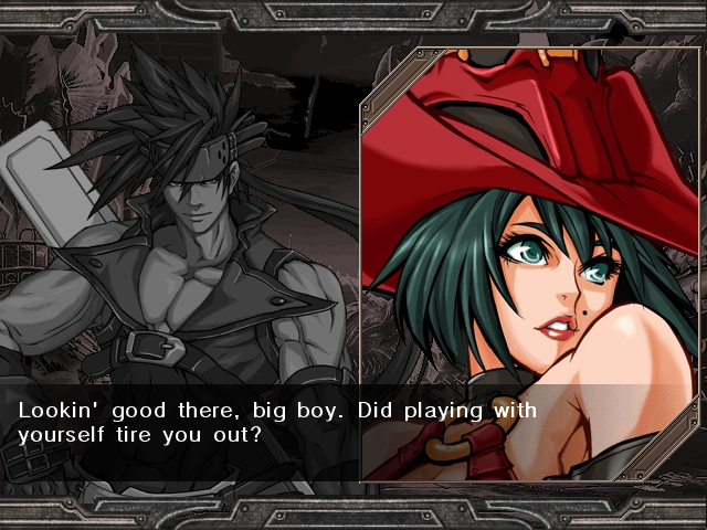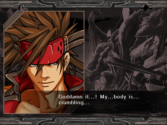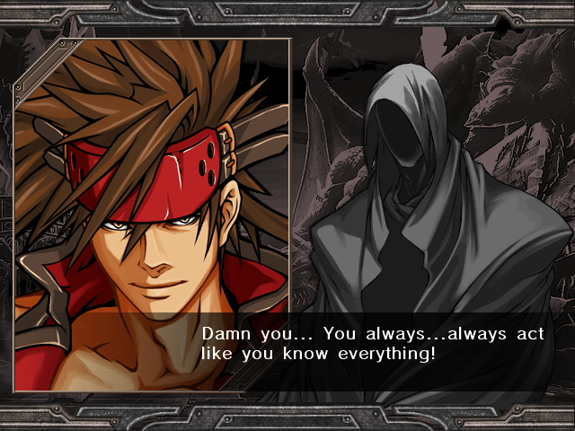 | Home | BackTweet | Arcade Mode | - Story Mode - | | A.B.A | Anji-Mito | Axl Low | Baiken | Bridget | Chipp Zanuff | Dizzy | Eddie | Faust | I-No | Jam | Johnny | Justice | Kliff Undersn | | Ky-Kiske | May | Millia Rage | Order-Sol | Potemkin | Robo-Ky | Slayer | - Sol-Badguy - | Testament | Venom | Zappa | | If Your Final Opponent Is Ky-Kiske | - If Your Final Opponent Is Order-Sol - |