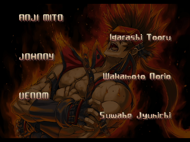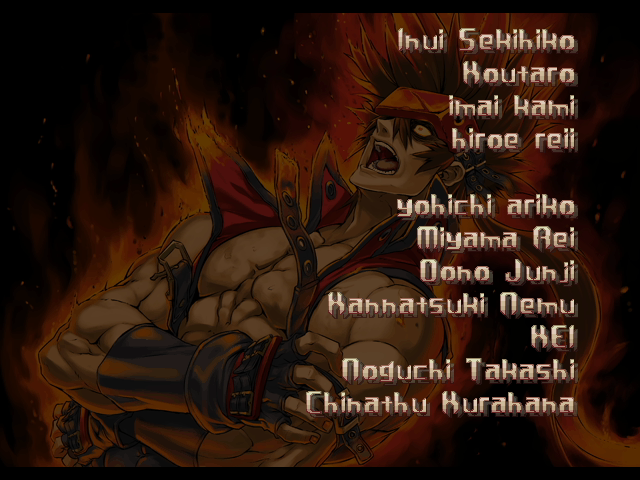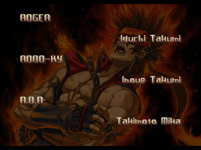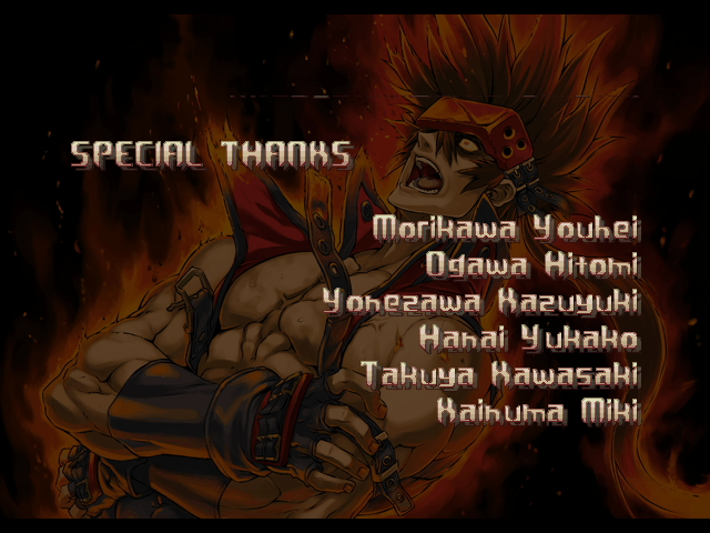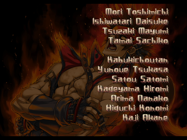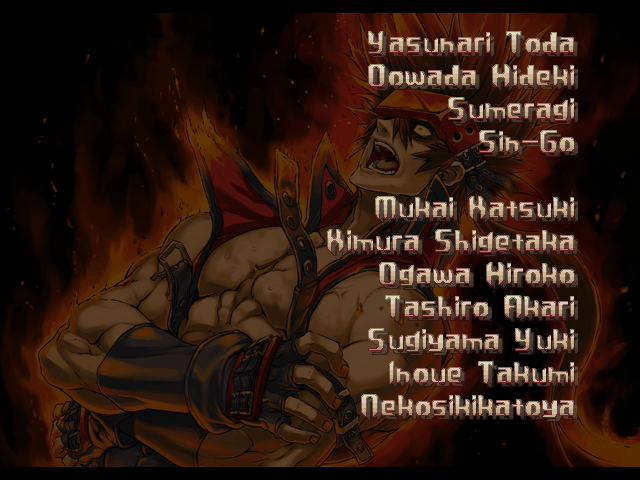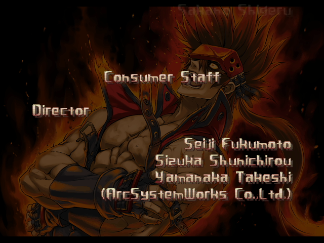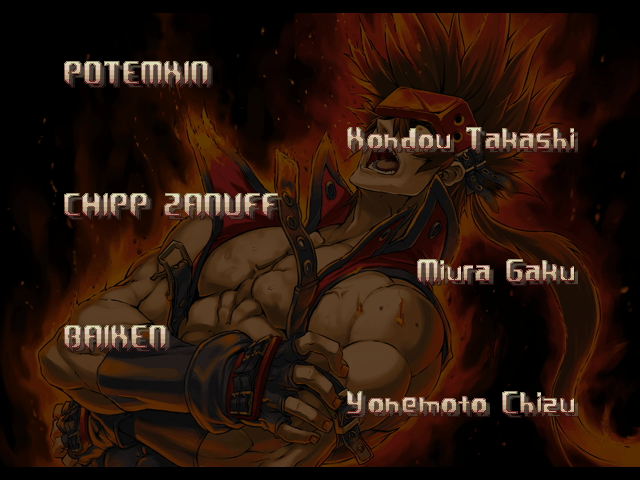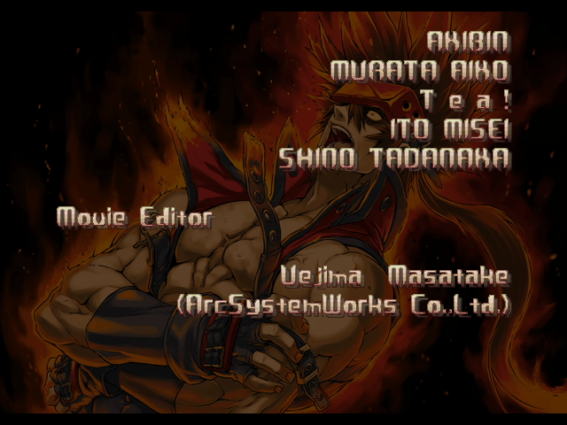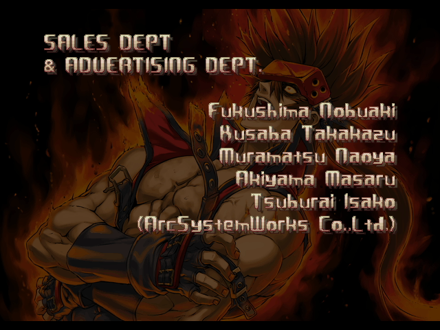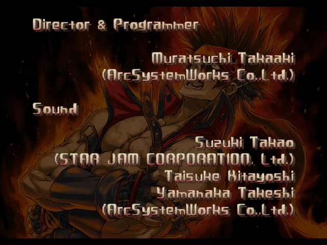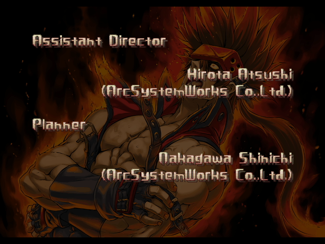 | If Your Final Opponent Is Ky-Kiske | - If Your Final Opponent Is Order-Sol - | | A.B.A | Anji-Mito | Axl Low | Baiken | Bridget | Chipp Zanuff | Dizzy | Eddie | Faust | I-No | Jam | Johnny | Justice | Kliff Undersn | | Ky-Kiske | May | Millia Rage | Order-Sol | Potemkin | Robo-Ky | Slayer | - Sol-Badguy - | Testament | Venom | Zappa | | Arcade Mode | - Story Mode - | |