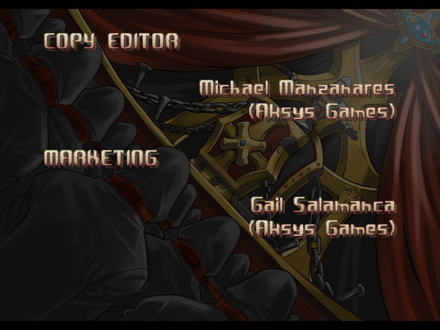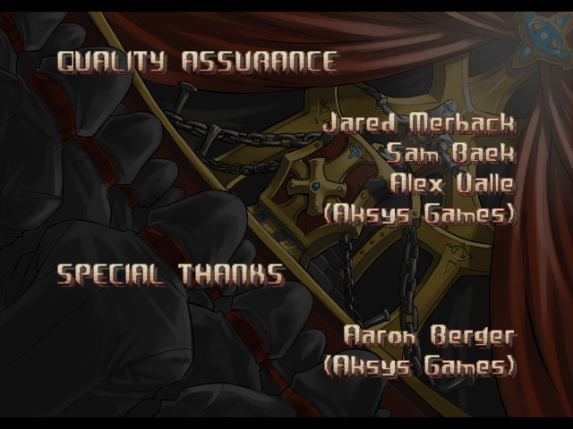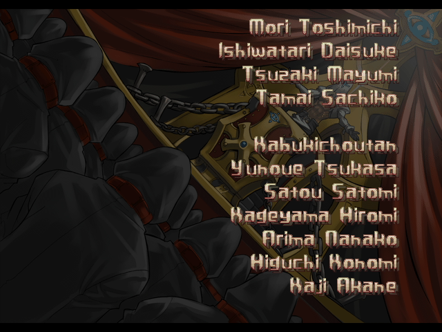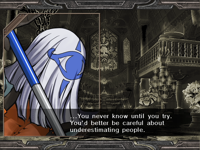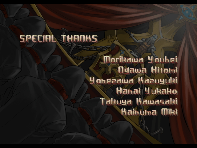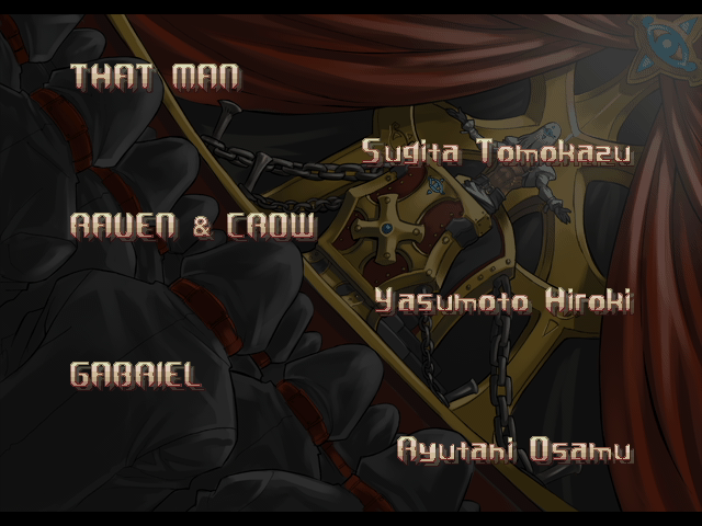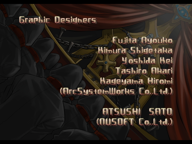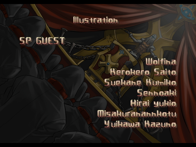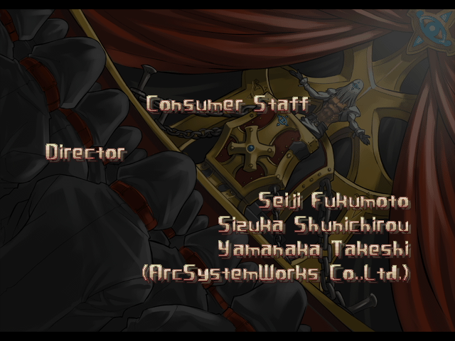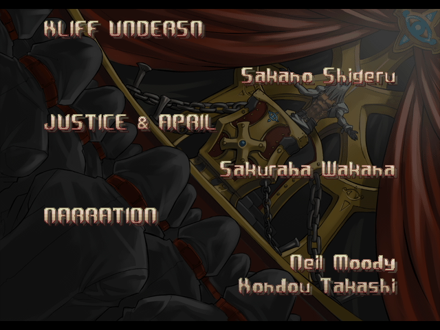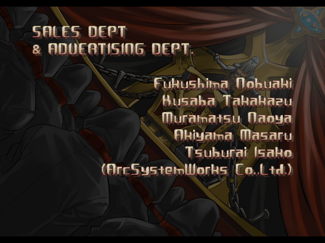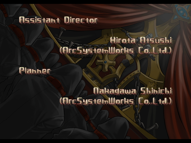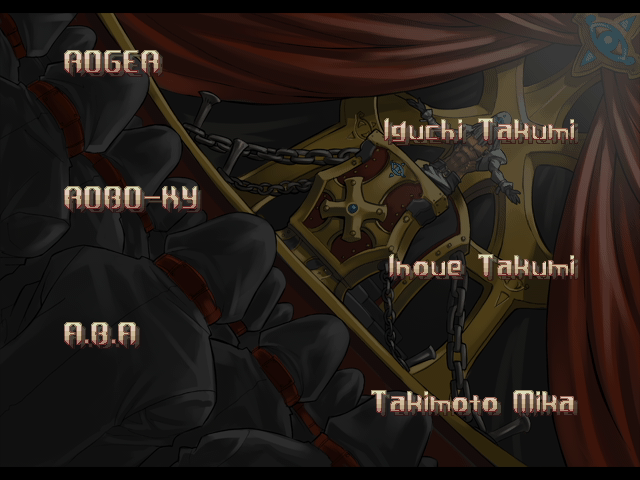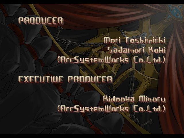 | - If Your Final Opponent Is Eddie - | If Your Final Opponent Is Justice | | A.B.A | Anji-Mito | Axl Low | Baiken | Bridget | Chipp Zanuff | Dizzy | Eddie | Faust | I-No | Jam | Johnny | Justice | Kliff Undersn | | Ky-Kiske | May | Millia Rage | Order-Sol | Potemkin | Robo-Ky | Slayer | Sol-Badguy | Testament | - Venom - | Zappa | | Arcade Mode | - Story Mode - | |