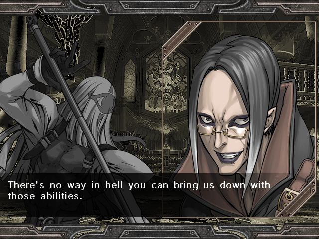 | Home | BackTweet | Arcade Mode | - Story Mode - | | A.B.A | Anji-Mito | Axl Low | Baiken | Bridget | Chipp Zanuff | Dizzy | Eddie | Faust | I-No | Jam | Johnny | Justice | Kliff Undersn | | Ky-Kiske | May | Millia Rage | Order-Sol | Potemkin | Robo-Ky | Slayer | Sol-Badguy | Testament | - Venom - | Zappa | | - If Your Final Opponent Is Eddie - | If Your Final Opponent Is Justice |
