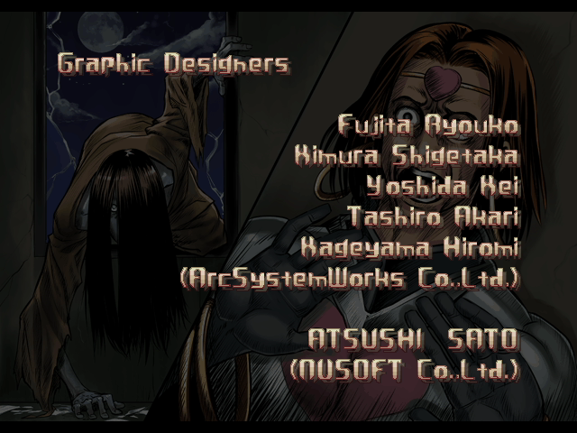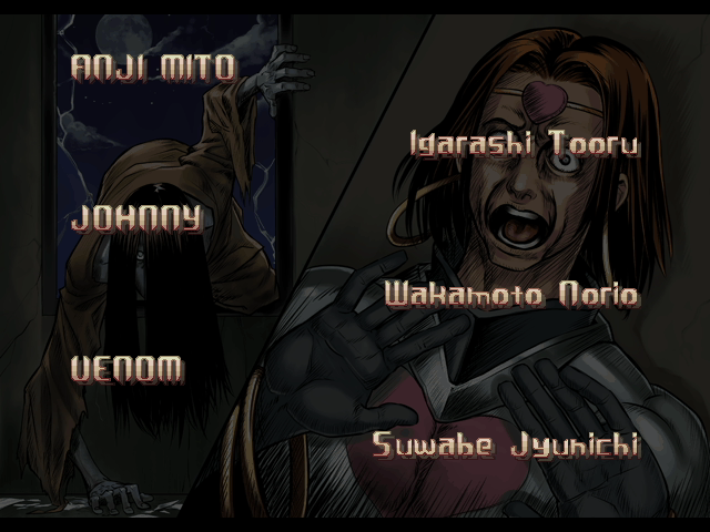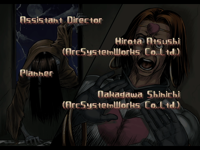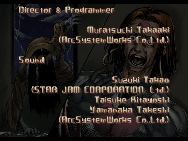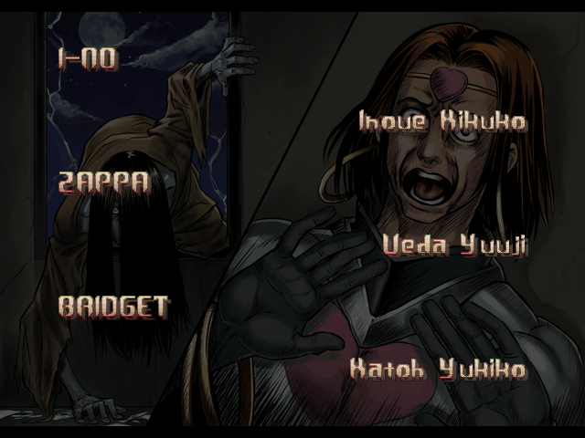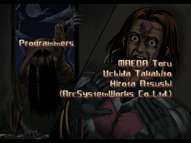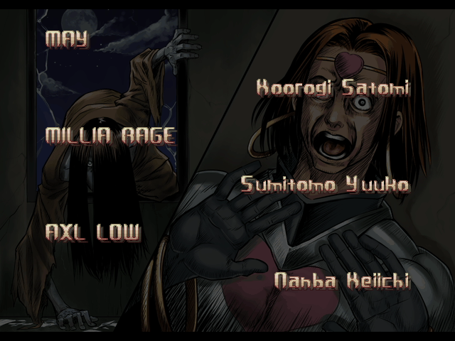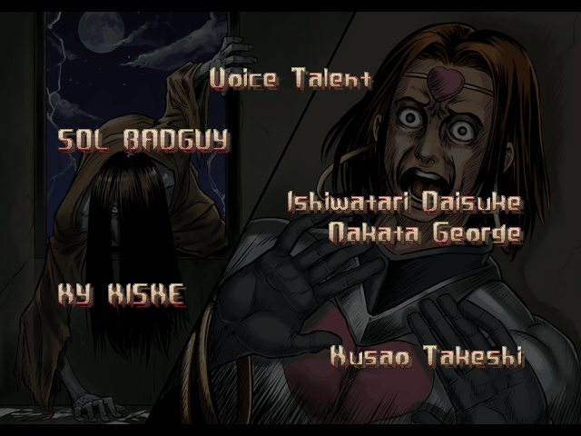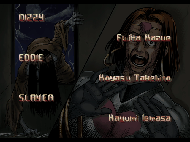 | - If Your Final Opponent Is Johnny - | If Your Final Opponent Is Slayer | | A.B.A | Anji-Mito | Axl Low | Baiken | Bridget | Chipp Zanuff | Dizzy | Eddie | Faust | I-No | Jam | Johnny | Justice | Kliff Undersn | | Ky-Kiske | May | Millia Rage | Order-Sol | Potemkin | Robo-Ky | Slayer | Sol-Badguy | Testament | Venom | - Zappa - | | Arcade Mode | - Story Mode - | |