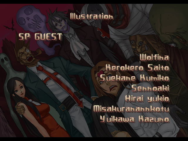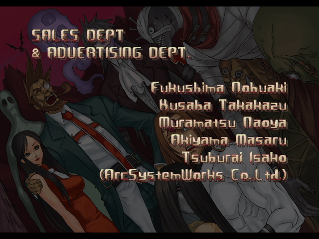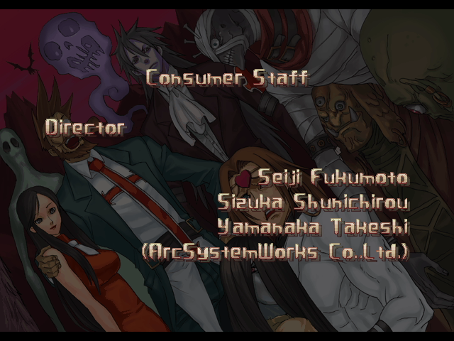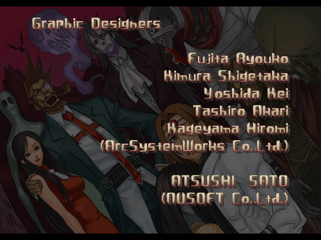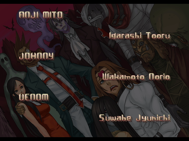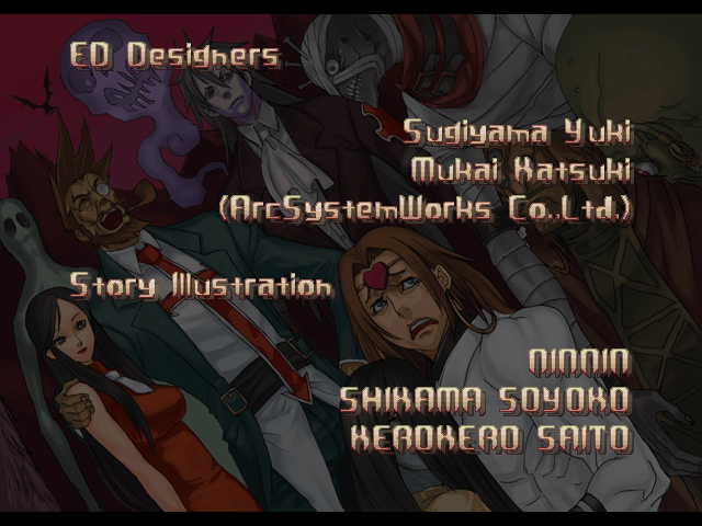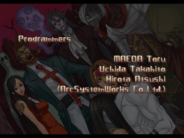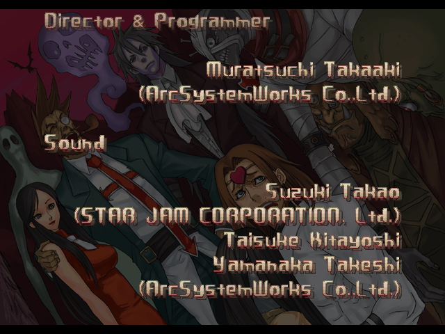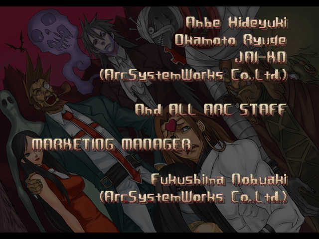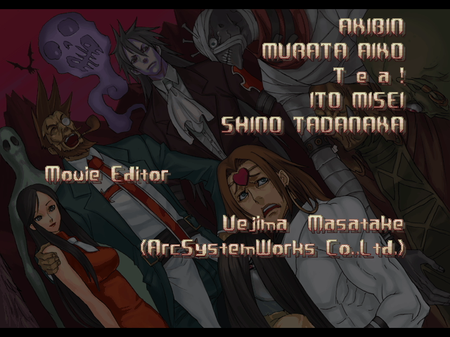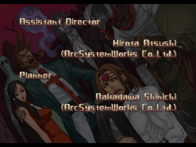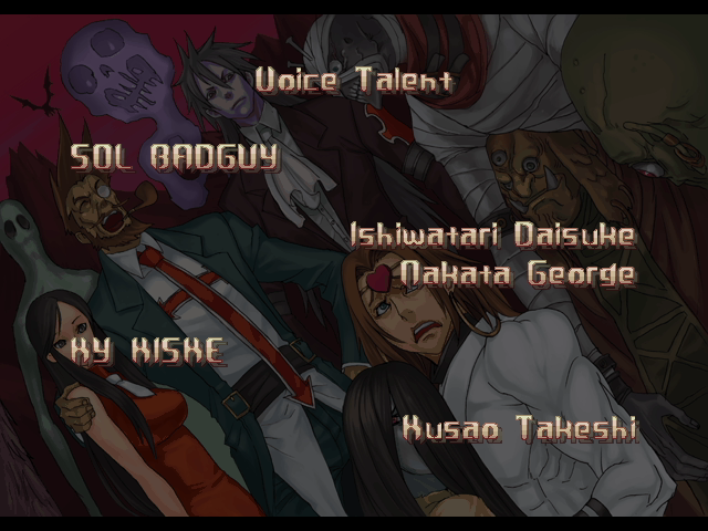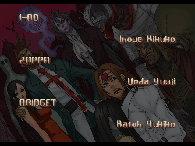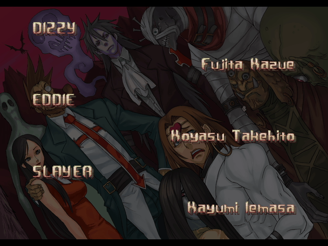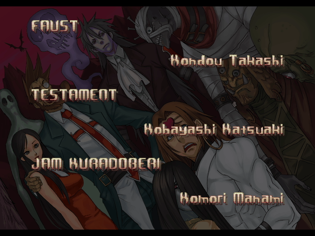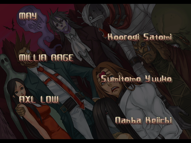 | If Your Final Opponent Is Johnny | - If Your Final Opponent Is Slayer - | | A.B.A | Anji-Mito | Axl Low | Baiken | Bridget | Chipp Zanuff | Dizzy | Eddie | Faust | I-No | Jam | Johnny | Justice | Kliff Undersn | | Ky-Kiske | May | Millia Rage | Order-Sol | Potemkin | Robo-Ky | Slayer | Sol-Badguy | Testament | Venom | - Zappa - | | Arcade Mode | - Story Mode - | |