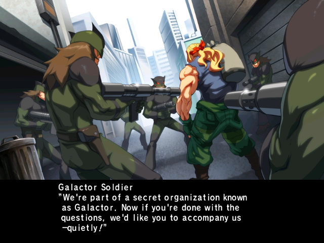 | Ken The Eagle | Casshan | Doronjo | G. Lightan | Ippatsuman | Joe the Condor | Jun The Swan | Karas | Polimar | Tekkaman | Tekkaman Blade | Yatterman-1 | Yatterman-2 | | - Alex - | Batsu | Chun-Li | Frank West | Kaijin no Soki | Megaman Volnutt | Morrigan | PTX-40A | Roll | Ryu | Saki | Viewtiful Joe | Zero | | - Arcade - | Ultimate All-Shotters | |