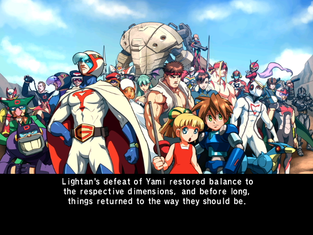 | Ken The Eagle | Casshan | Doronjo | - G. Lightan - | Ippatsuman | Joe the Condor | Jun The Swan | Karas | Polimar | Tekkaman | Tekkaman Blade | Yatterman-1 | Yatterman-2 | | Alex | Batsu | Chun-Li | Frank West | Kaijin no Soki | Megaman Volnutt | Morrigan | PTX-40A | Roll | Ryu | Saki | Viewtiful Joe | Zero | | - Arcade - | Ultimate All-Shotters | |