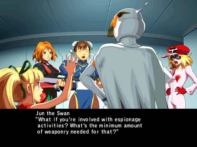 | Home | BackTweet | - Arcade - | Ultimate All-Shotters | | Ken The Eagle | Casshan | Doronjo | G. Lightan | Ippatsuman | Joe the Condor | - Jun The Swan - | Karas | Polimar | Tekkaman | Tekkaman Blade | Yatterman-1 | Yatterman-2 | | Alex | Batsu | Chun-Li | Frank West | Kaijin no Soki | Megaman Volnutt | Morrigan | PTX-40A | Roll | Ryu | Saki | Viewtiful Joe | Zero | [ Go Back To Being A Normal Young Woman ]