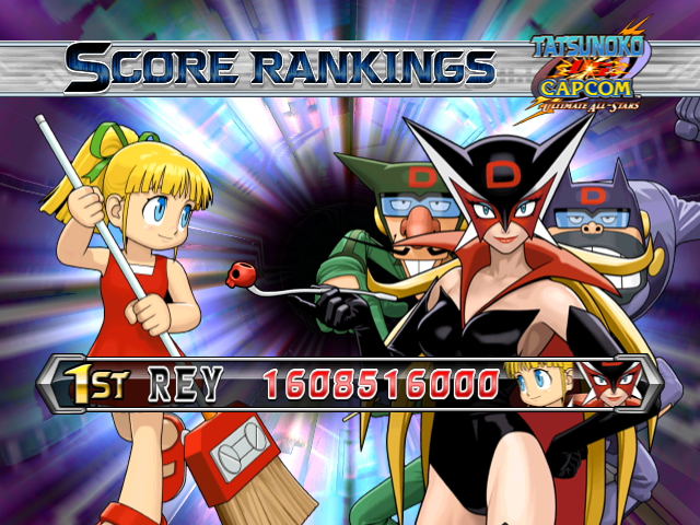 | Ken The Eagle | Casshan | Doronjo | G. Lightan | Ippatsuman | Joe the Condor | Jun The Swan | Karas | Polimar | Tekkaman | Tekkaman Blade | Yatterman-1 | Yatterman-2 | | Alex | Batsu | Chun-Li | Frank West | Kaijin no Soki | Megaman Volnutt | Morrigan | PTX-40A | - Roll - | Ryu | Saki | Viewtiful Joe | Zero | | - Arcade - | Ultimate All-Shotters | |
