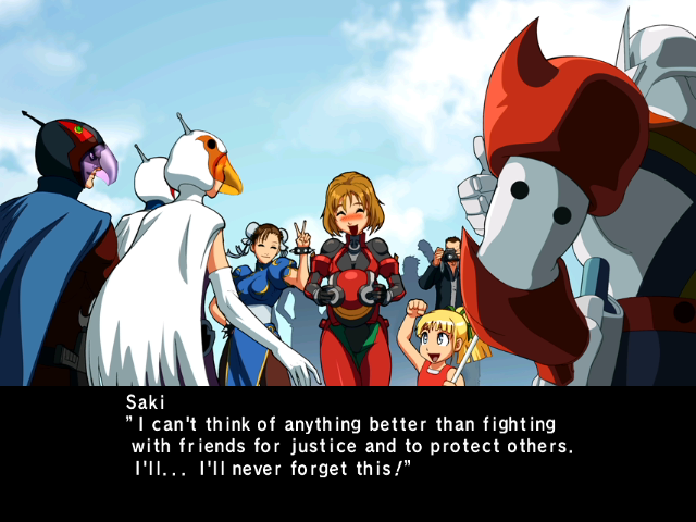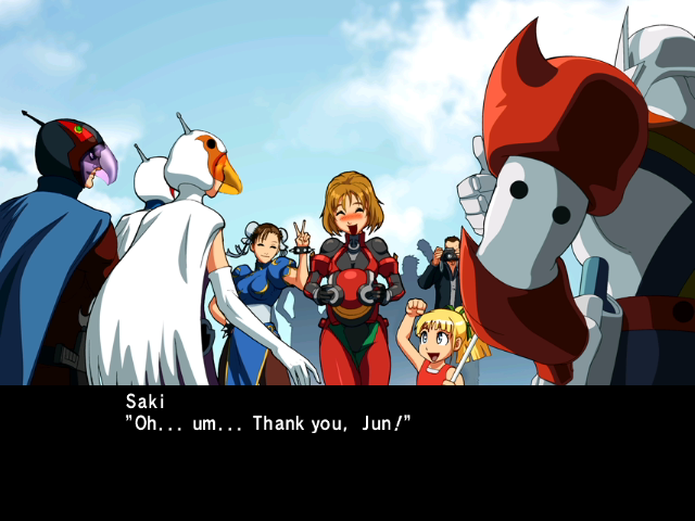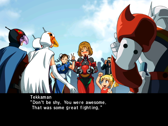 | Ken The Eagle | Casshan | Doronjo | G. Lightan | Ippatsuman | Joe the Condor | Jun The Swan | Karas | Polimar | Tekkaman | Tekkaman Blade | Yatterman-1 | Yatterman-2 | | Alex | Batsu | Chun-Li | Frank West | Kaijin no Soki | Megaman Volnutt | Morrigan | PTX-40A | Roll | Ryu | - Saki - | Viewtiful Joe | Zero | | - Arcade - | Ultimate All-Shotters | |