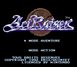 Actraiser has two seperate parts: City building/simulation mode, and action mode. The former involves visiting the different cities on your planet, listening to the needs of the people, and acting accordingly. This may involve getting rid of monsters flying around, using lightning to clear land for city development, or creating rain in the desert so that the people there can grow crops. The other half, action, is a good old-fashioned 2D platformer. You assume a physical form on the planet's surface and use your sword and some magic power to eliminate monsters and their bosses. One notable change in the European versions of Actraiser that wasn't in the US or Japanese versions is the ability to choose between the full game of simulation and action, or a more traditional game consisting of just the action levels.