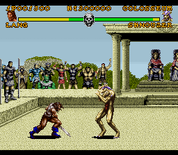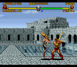 | Weak fighter based in a mythical setting. There are two modes of play: A single player Hero mode, which is essentially a standard tournament, except that you can only play as one character. In Battle mode, one or two players can fight single matches using whichever of the six fighters you'd like. Fighting itself consists of one jump button and one attack button.