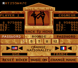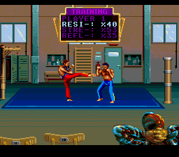 | Create a fighter, choose 13 moves for him from a list of 55, train to grow stronger, then enter into a championship to become the best fighter in the world. Graphics are a little rusty, animations look almost motion captured but unfortunately aren't very smooth, and gameplay is hampered by stiff controls.