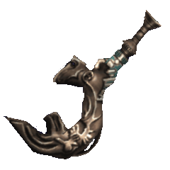 Curse of Darkness' weapon selection is anything but conventional. It's not as if there are a certain number of weapon and armor types that can be collected simply via a process of exploring; rather, Hector will create for himself almost all of his own arsenal using his combining ability, which is discussed in the sub-section in following. Listed here is the whole of equippable gear as broken into their four sub-categories: Weapons, Head Items, Armor and Accessories. It's the accessories that are distinct in that they're the only class of equipment that is procured via the more traditional "Found In/Dropped" scenarios. (The weapon images were contributed by Khala.)