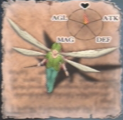 "The initial fairy-type Innocent Devil, strong in healing. Having just left its cocoon, its body is still soft." The fairy types are best described as Curse of Darkness' white mages; they're largely non-combatal and assist mainly through their healing powers. And like Navi, from The Legend of Zelda: Ocarina of Time, fairies always hover overhead, awaiting command. The Infant Fairy is the base example of this principle: It will simply follow Hector around and assist him through the use of its weak healing spell and its unlock ability. Since it's weak, low in HPs, and afforded only a bare minimum of defensive measure, the Infant Fairy is sure to suffer quick deaths if not used sparingly and kept away from hectic fight scenarios (during boss battles, mainly). |