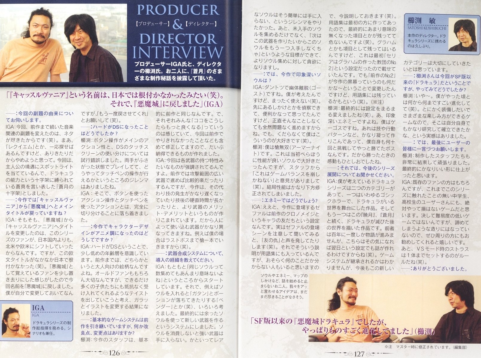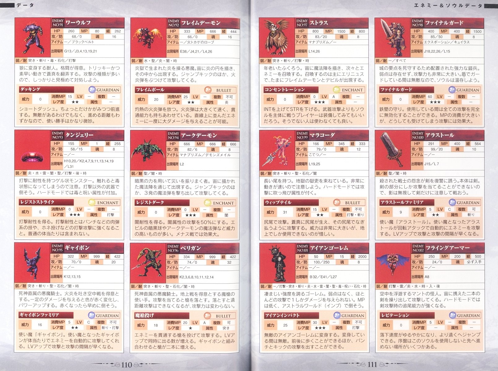 Konami created for Akumajou Dracula: Sougetsu no Juujikaan, its first DS series' title, an official guide. This page contains shots of its front and back covers plus some samples taken directly from the magazine. (All images have been contributed by JPCVFAN.)
