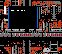 For reasons unknown, the Simon's Quest developers were to include some type of mechanic that allowed for Simon to interact with the Fishman enemies, who would be surprisingly chatty. While incomplete, the mechanic can be implemented into the game by using a Game Genie and entering the code "XXZZZZ." When you then approach a Fishman and "talk" to it, a dialogue box will open and display a random line from the game's script; curiously, it'll sometimes display a never-before-seen message relating to "increased skill," which, like the former, is still a random event. (This information was provided by Amar Youkai; the images are credited to XCult.)