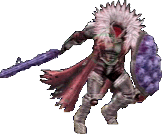 has multiple attacks: He thrusts his lance horizontally or diagonally downward.