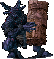 shield-ram, a jump-thrust that causes seismic waves, and a curse-inducing beam |