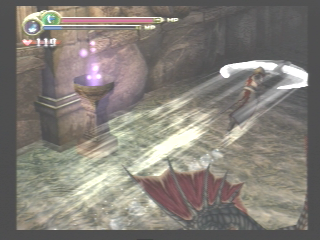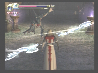 Lament of Innocence features a simplified RPG system wherein Leon can equip armor and, under special conditions, three separate accessories. While these may affect his statistics in one way or another, Leon's true success will be more dependent on how well he maintains his meters--by collecting HP-, MP- and Hearts-Ups--and by how much he expands upon his offensive and defensive skills. Along the way, he'll find many other items that will restore his measurable attributes or aid him in some other way. Also, he will find relics, which afford him special abilities, and he'll collect orbs, which add super power to his five sub-weapons. While Pumpkin's mission is largely the same Leon's, these is one significant difference: Because it has its own sub-weapon, it can use the orbs to power them instead; these will be illustrated on the third of this three-page overview.