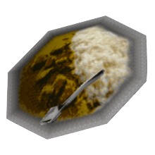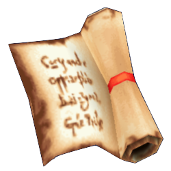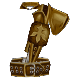 Leon will collect two kinds of items to populate two separate lists: (1) The Item List, which holds his meter replenishments, his valuable gems--which he can sell to Rinaldo back at the cottage--and the sequence-initiatiators. These must be used by utilizing the game's real-time windows; however, they can be arranged on the inventory screen for your convenience. If an item is exclusively purchased at Rinaldo's shop, it will be noted. (2) The Event Items List, which holds his maps, map markers, text items, keys, and special tiles. These items will be used under special conditions. (These weapon images were contributed by Khala.)