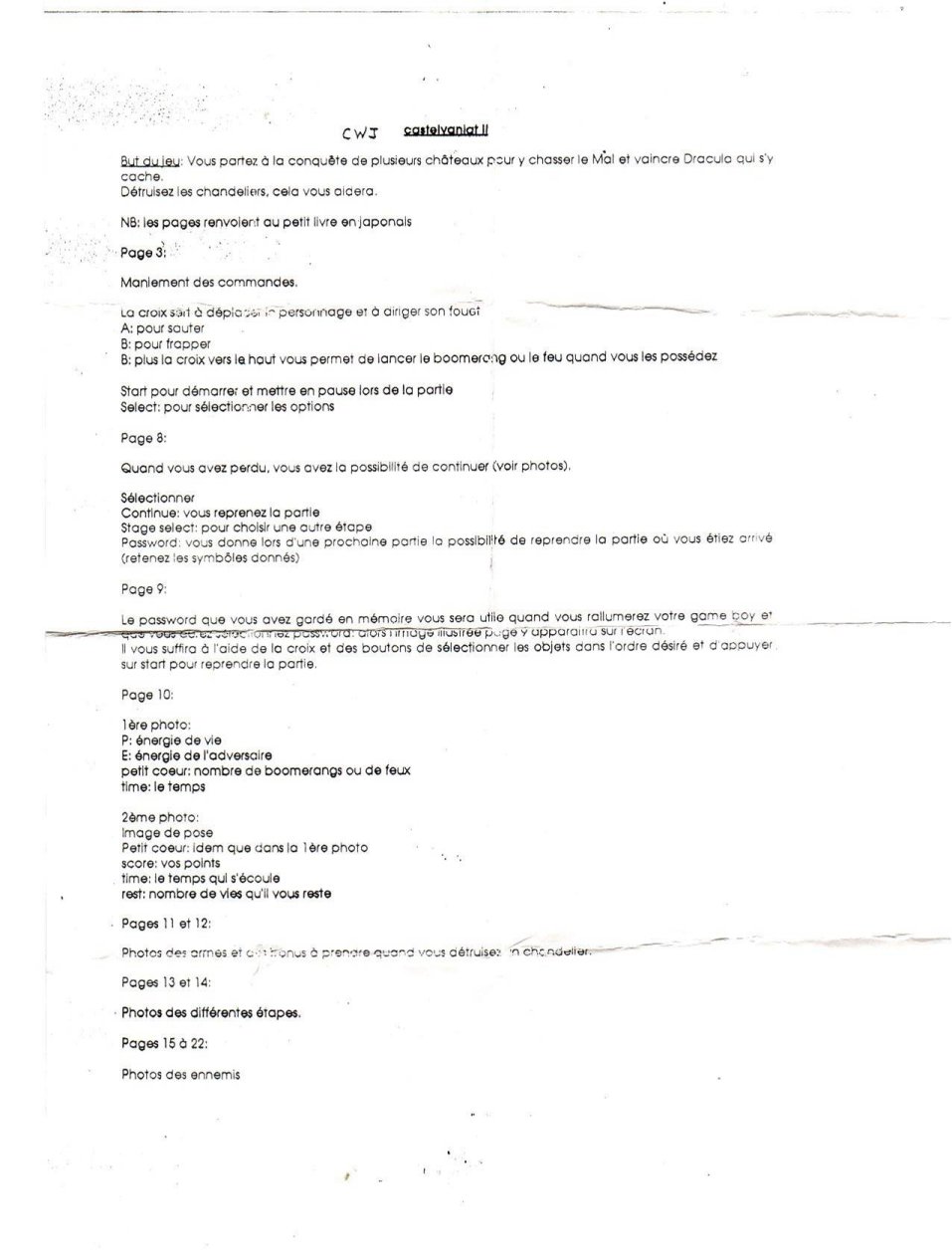 From the contributor, Guillaume the Castle Lord, who also submitted the German manual: "In terms of the French version, the game's manual is strictly identical to the U.S. version. Though, supplementing the package is a 'bonus' sheet of paper with a rather short explanation typed out in French. Still--it's worse than the German version!"