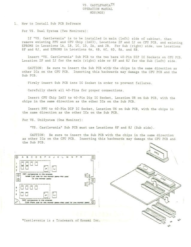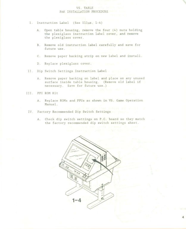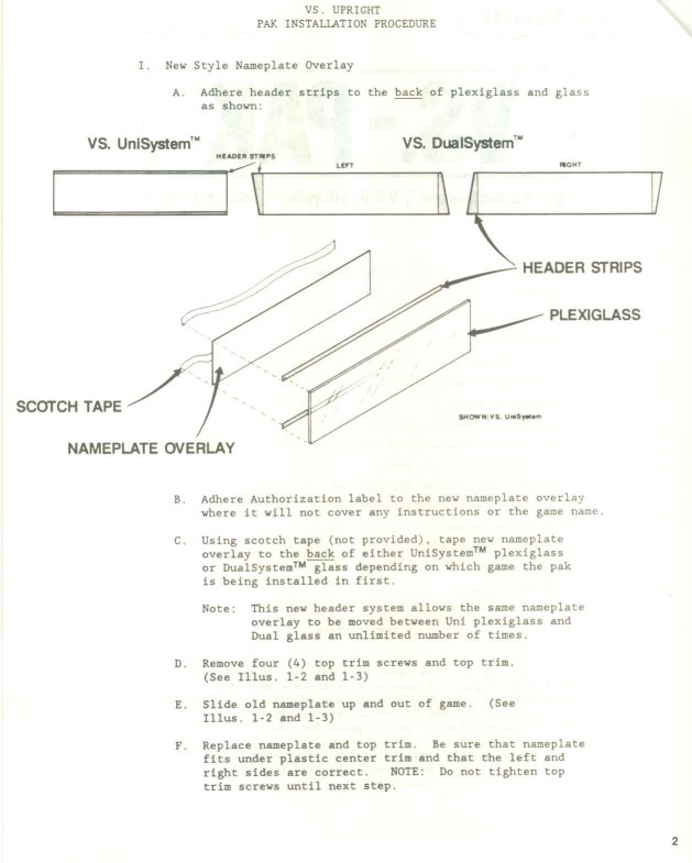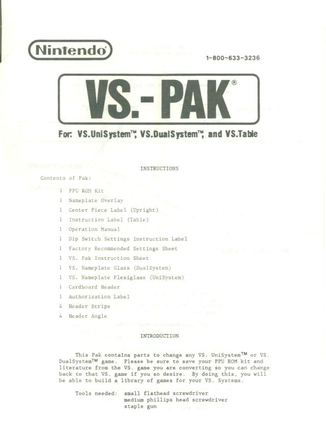 Nintendo shipped the Versus series' cabinets and rom kits with the usual documentation. These included two such documents: An operation manual and a walkthrough for the installation procedure. These scans were created by Protogem and sent in by Morgoth.