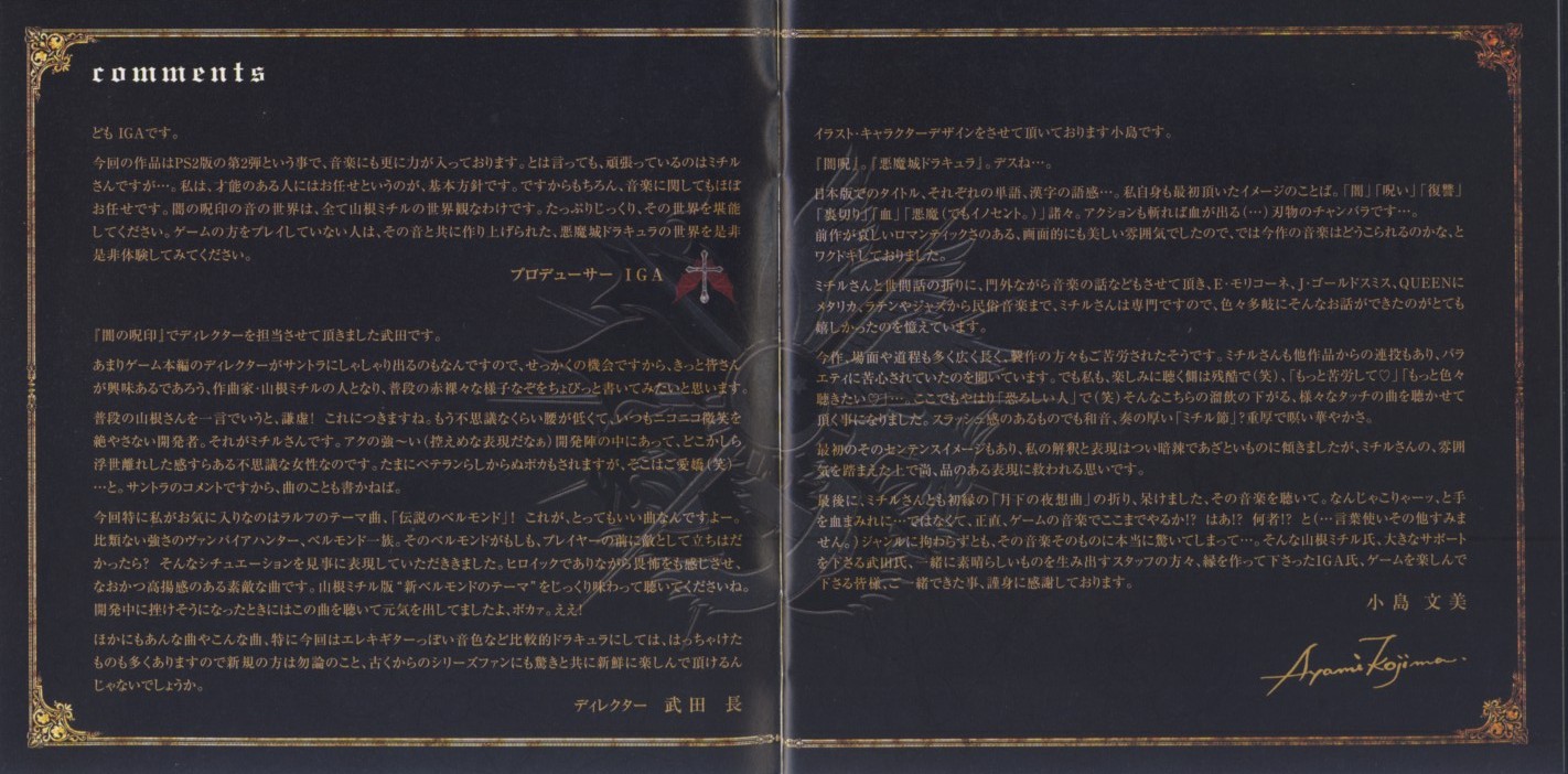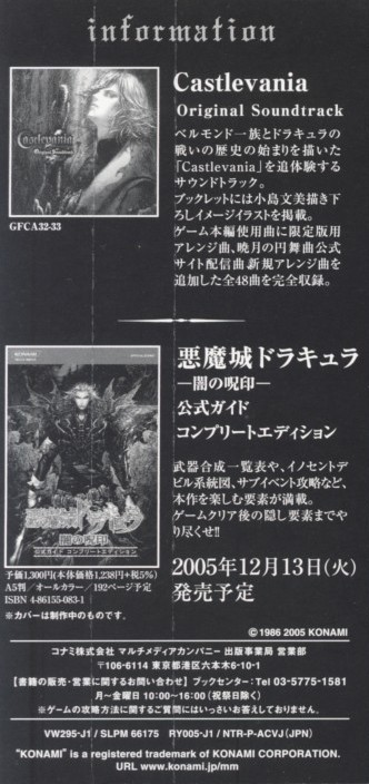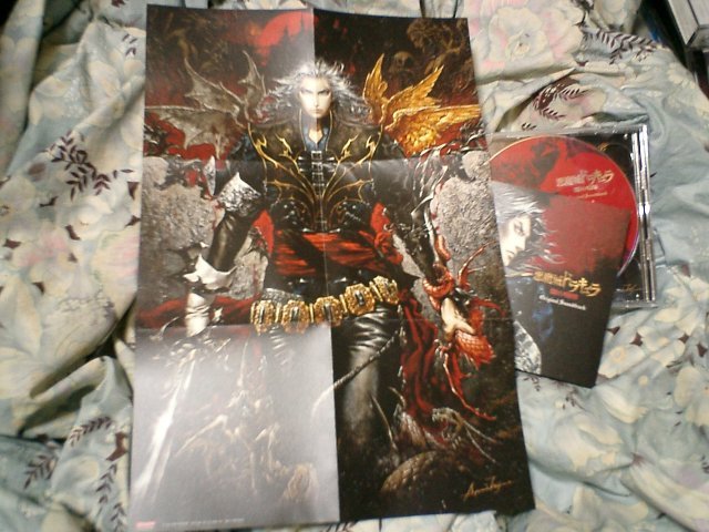 Packaged only with the first release of the Akumajou Dracula: Yami no Juin soundtrack is a special reversible poster. Additionally, there's some specially drawn art included as a further bonus. (Note: Click on the sample to see the larger version.)