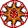 it into the ground, causing flames to wave; it uses its spikey shield to crush intruders |