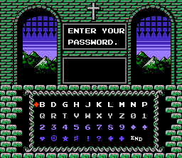 (1) For some reason, the password screen has been changed from the original, with consonants replacing any previous vowels. Also, passwords won't work if you replace the missing vowels with the consonants that took their place. Since you can save your game into the CD's memory anyway, this shouldn't be too much of a problem. (2) When you would collect a Dracula body part in the NES game, it would say, "You now prossess Dracula's (name of part)." Its spelling has been corrected.