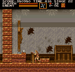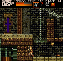 | Later on in stage five, you'll come to another weighted platform that works to release a flock of hunchbacks from its captivity. Directly below the platform (after you eliminate the threat) is a wall that you can break away; after completing the process, stand in its crevice for five seconds and a rare 1-up symbol will pop up not far away. (Contributed by Morgoth.) | ![]() |
