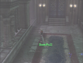 To the left of the Castle Entrance is the hall that takes you to the castle's portal room--it's the one that also leads to the game's first save room. In this short hall, there are three windows from which moonlight beams through. The beam shining through the third such window, near the end of the hall, is more greenish than the others, and it holds a secret: If you stand is this green light where it meets the side of the hall's red carpet, you can duplicate all of the items in your inventory up to the maximum of nine. To do this, stand in the light and pause the game; select "Items" and then start moving the cursor up and down. Each time you do this, the collected item moved unto will increase by one. This can be done over and over again thereafter and thus save money. Also, if you've found any precious stones, you can duplicate them and continuously sell them to Rinaldo to buy the more expensive items. This trick can also be pulled off in the Pagoda of the Misty Moon, near the green-light window in the hall before the "VI" tablet room; and another can be found and utilized in the first room of the second floor by standing in the rug's circle design. (Credit to gamefaqs.com.) |