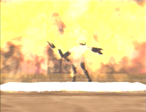 Ordinarily, when Leon uses his crystal sub-weapon, a single crystal will levitate in place and explode seconds later. By using this method, Leon can cause a chain reaction of explosions by releasing one crystal after another. But Leon can harness another power as a result: To accomplish this, you must start walking or running at a consistent pace while continually releasing crystals. Eventually, the chain reaction of explosions will catch up to Leon, and its energy will resonate unto him. From this point on, if you keep hitting the "O" button, Leon will not release crystals when the button is hit. Instead, Leon will become a walking explosion-machine; as the button is pressed consecutively, Leon will keep releasing this energy, and he can now use himself as a weapon. (Contributed by hunterfbn@lycos.com)
