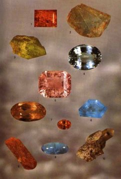 | Description: | "A transparent Silicate (Al2[SiO4](F, OH)2) with a great diversity of color (blue, yellow, rose, green or even colorless). The most prized varieties are the yellow and rose, which can be found in Brasil and Pakistan." |