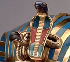 | Description: | "Uraeus is a Greek word originating from the ancient Egyptian 'she who rears up.' It is the stylized form of an Egyptian cobra, a symbol of royalty and deity in ancient Egypt. In Egyptian mythology, the first uraeus was created by the goddess Isis from the dust of the earth and the spittle of the sun-god Re; Isis gained the throne of Egypt for Osiris using this instrument. Uraeus was worn by the Pharaohs as a head ornament as a claim over the land. The left picture shows the god Horus; the right picture is a close-up of Tutankhamen's mask." |