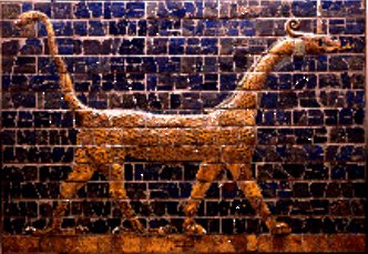 | Description: | "In Babylonian mythology, mushussu was created by the dragon goddess Tiamat. After Tiamat's defeat, the mushussu was subdued by the hero Marduk and took place at his feet. Mushussu means 'furious snake.' It is associated with the constellation hydra (right picture). The first picture shows a reconstitution of the Ishtar gate of Babylon, which is shown in a museum in Berlin." |