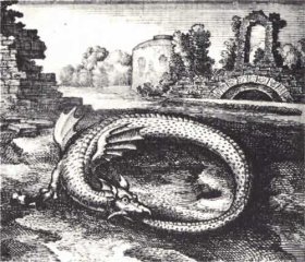 | Description: | "The orobourous is a serpent that eats its own tail. Its existence dates back almost 1600 years B.C. Really, it's a symbol of the cyclic nature of the Universe: Creation out of destruction; it is also an emblem of immortality. (See also Death Dragon.)" |