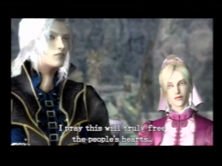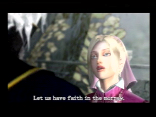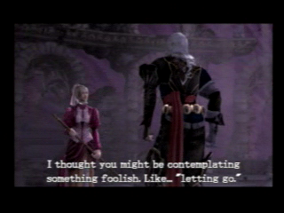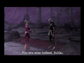 Julia and Hector chat about the battle's conclusion and decide that it's best to hurry out of the castle, which begins to shake and crumble. Before warping their way out to safety, Julia says her final good-bye to Isaac.