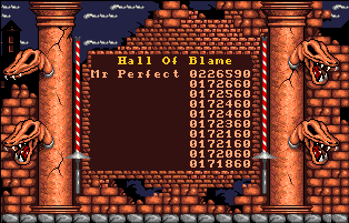The maddening Amiga version, the worst excuse for a Castlevania game this side of Haunted Castle, offers you an equally unrewarding ending. After defeating Dracula, Simon escapes the castle and watches its destruction. Mainly, lightning strikes it, which I assume makes it explode. We don't know because it immediately cuts to the top-score screen.