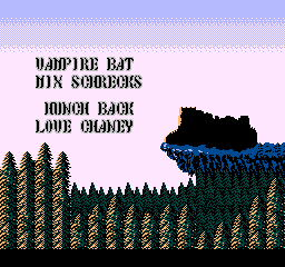 The VS. Castlevania ending mirrors that of its NES and computer counterparts. The only difference is that the arcade versions utilize brighter colors. You know the drill by now, so there's no need to tell you what's going on.