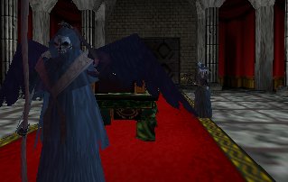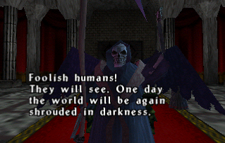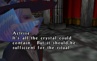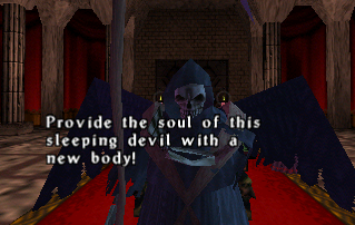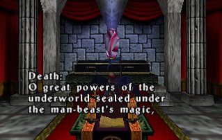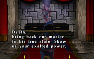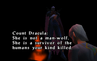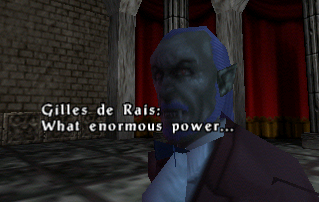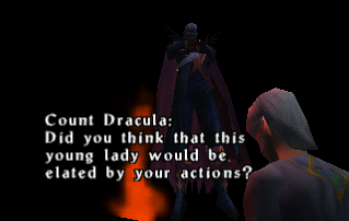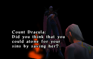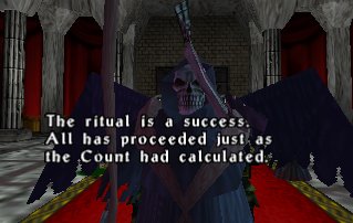 After the credits roll, we cut to another scene. This one shows Death, Gilles De Rais and Actrise in the castle keep, right in front of Dracula's casket. Since the keeper of Dracula's sleep was defeated, they use Cornell's powerful wolf form--which was captured in a crystal after Cornell projected it outward to save Ada from that very crystal--as a sacrifice in an incantation to grant Dracula life in a new body; it's decreed by Death that Dracula will rise soon in a new body, hinting he'll take the form of a child (describing Malus' characteristics).