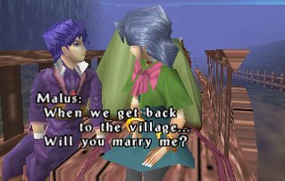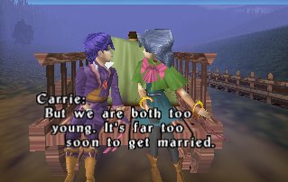 Suddenly, Malus asks Carrie to marry him, but she notes that they're both too young; he concedes that they should get married when they get older, wherein he could protect her always. When Carrie gives a vague answer, Malus demands that she say yes. Mistaking his tone for playful, after some thought, she promises that she will one day marry him.